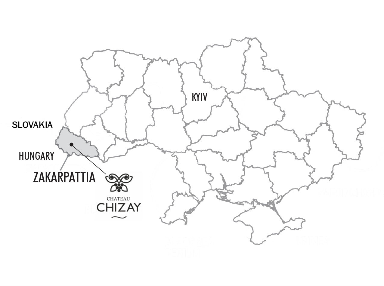 Chateau Chizay was founded in 1995 in the village of Berehove in the Zakarpattia region, the Westernmost region in Ukraine, a few kilometers from the Hungarian border. The first vineyards were planted here more than 2,000 years ago, before the Austro-Hungarian Empire. Chizay has a deep connection to the Zakarpattia region’s long history of winemaking which has been influenced over the years by Hungarian, Italian, and Austrian traditions.